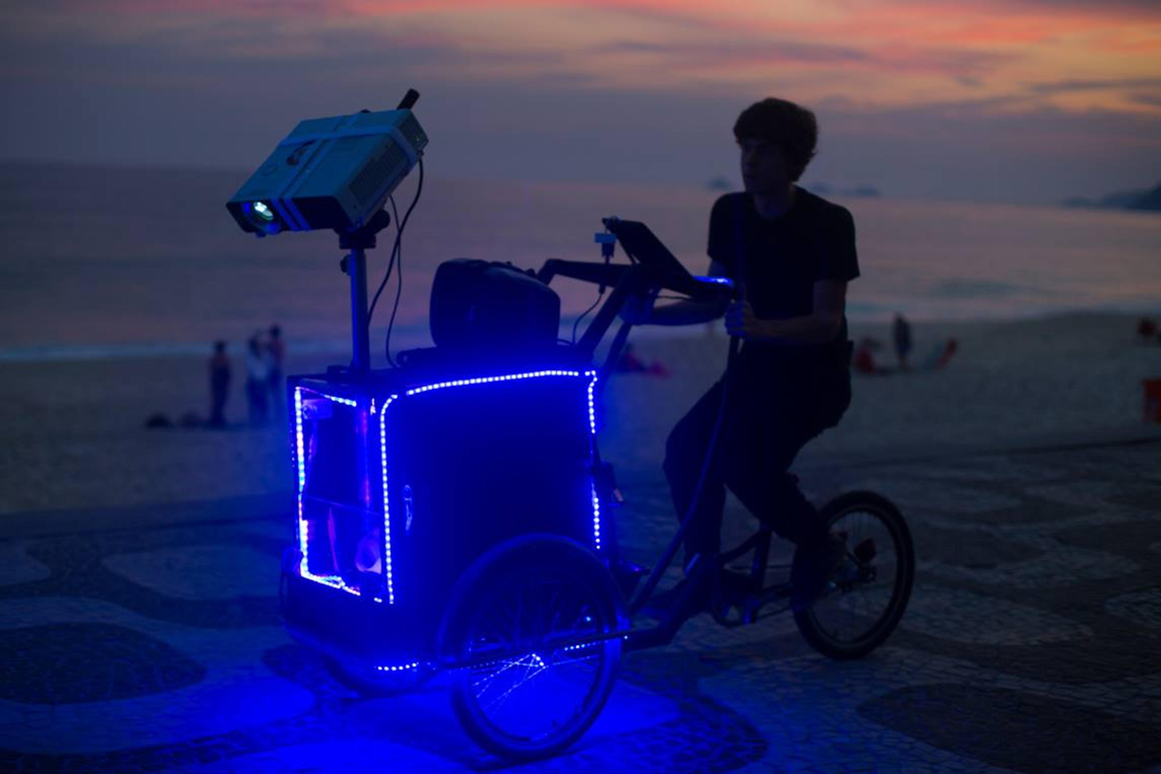 Learn MoreThe two roving nomads of the digital era have fused interactive technology with street art, using custom-fitted tricycles called Suaveciclo” that carry speakers and projector equipment. VJ SUAVE describe their work as “ Digital Graffiti”, created mainly using traditional animation which allows them to edit and play their Whimsical animations in Real-Time. The artist duo have made public artwork that's mobile, interactive, and constantly changing.